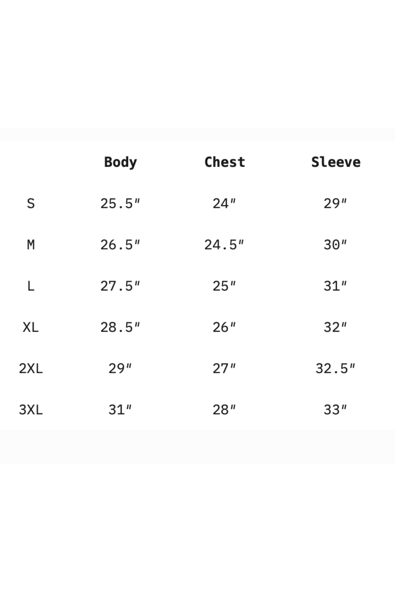• Size chart measurements are approximate & allow for +/-1.5" variation