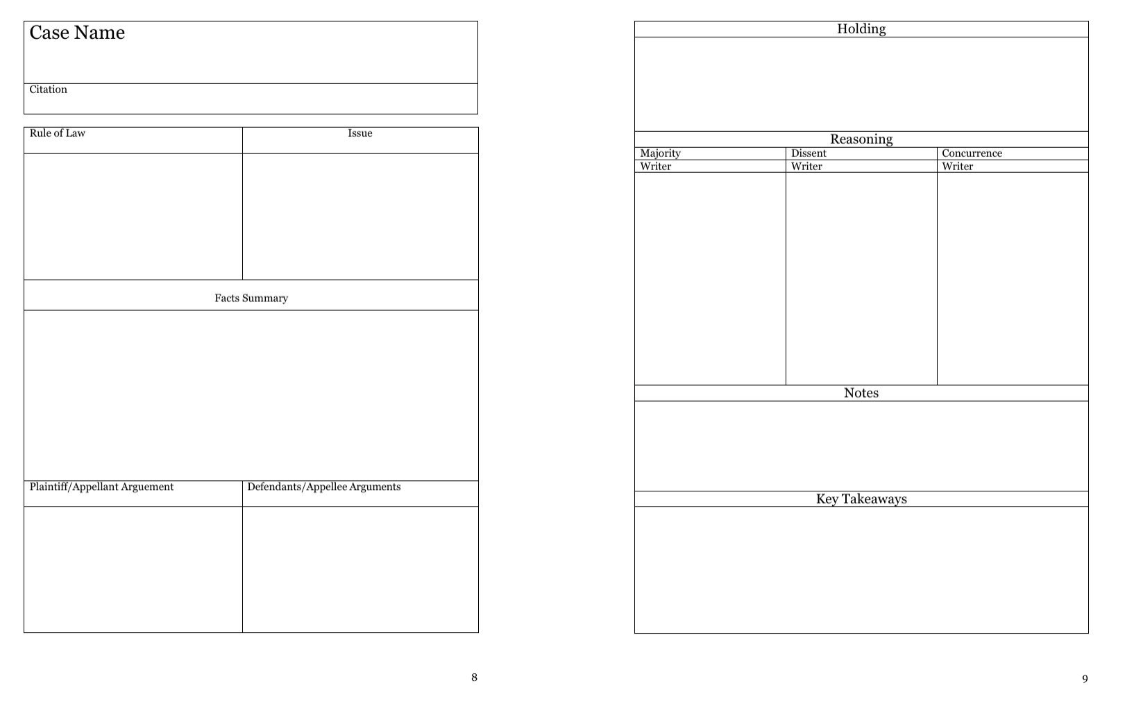 The Law Student Case Brief Notebook